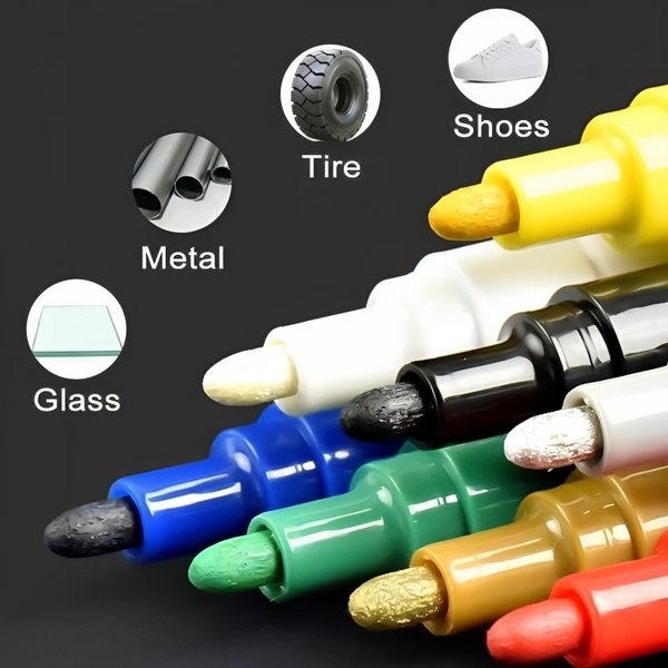De pen werkt goed op mijn autobanden en de kleur blijft echt lang zitten.