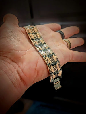 De combinatie van zuiver koper en triāneodym magneten stimuleert microcirculatie en ontspant spieren rond de pols, waardoor pijn bij typen, klussen of sporten afneemt.