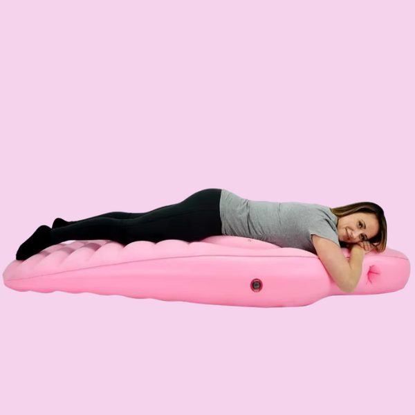 Blaas het matras op tot de gewenste stevigheid. Plaats het onder je rug, heupen of buik voor optimale steun en comfort.