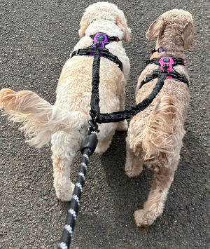 Elimineert trekken, klitten en stress tijdens wandelingen met twee honden comfortabel