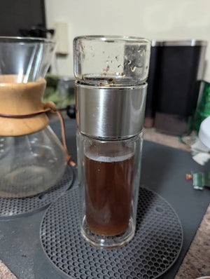 BrewSip⢠houdt bladeren apart met een slimme 3-in-1 filter. Geniet van een helder, droog mondgevoel zonder fusen, ideaal voor werk of onderweg.