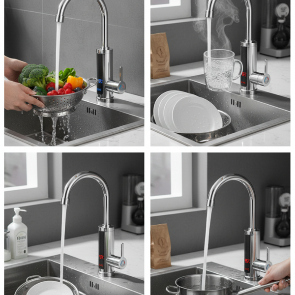 Met het digitale temperatuurscherm zie je meteen de exacte watertemperatuur. Geen koude verrassingen meer tijdens koken of schoonmaken, je behoudt volledige controle en veiligheid.