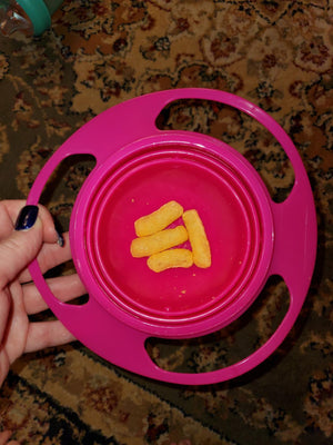 De gyroscopische binnenkom draait mee en blijft recht, zodat snacks en droog voedsel in de kom blijven, zelfs als je peuter de kom kantelt of draait.