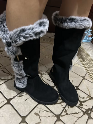 Heel tevreden na een maand gebruik: mid-calf lengte beschermt tegen opspattende sneeuw, stevige zool voor stabiel lopen en dikke voering die echt warmte levert, zelfs bij natte omstandigheden, zonder dat het log aanvoelt.