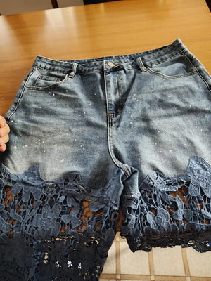 Was de jeans binnenstebuiten en vermijd strijken direct op de kanten details om ze mooi te houden.