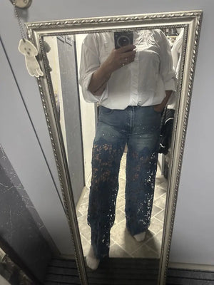 Met subtiele kanten uitsparingen voeg je een vleugje elegantie toe aan je outfit. Deze jeans geven je de mogelijkheid om je eigen stijl te laten zien, terwijl je je comfortabel en zelfverzekerd voelt in iedere situatie.