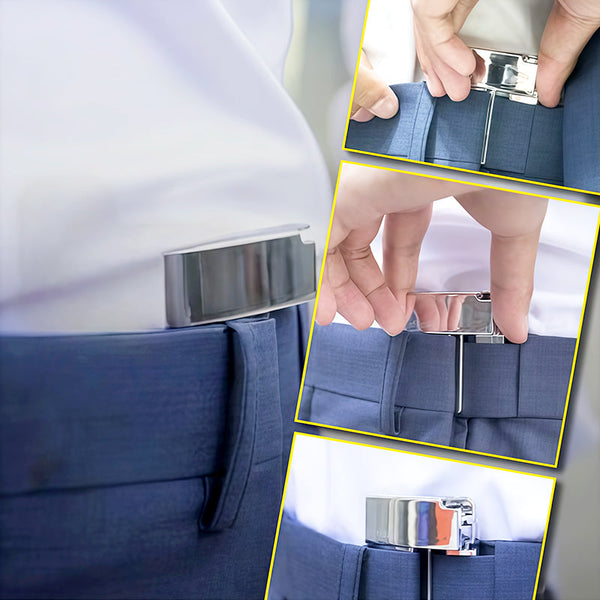 De Waisté™ is bijna onzichtbaar in gebruik. Bevestig hem aan de tailleband van je broek of rok voor een naadloze look zonder zichtbare riemlijnen, waardoor je outfit altijd elegant blijft.