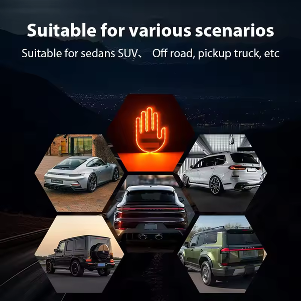 Dankzij de heldere LED-lampjes is het vingerlicht zowel overdag als 's nachts goed zichtbaar. Hierdoor kun je op elk moment van de dag je gevoelens delen en aandacht trekken van andere bestuurders, wat de communicatie op de weg bevordert.