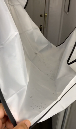 Klop het schort uit boven de prullenbak om de haren te verwijderen. Spoel het indien nodig af met water, het is waterafstotend.