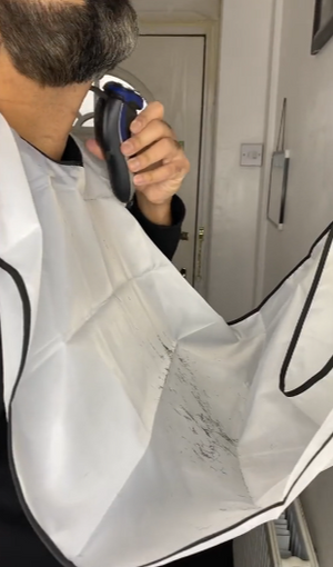 Verminder opruimstress na het scheren met een handig schort dat haren opvangt.