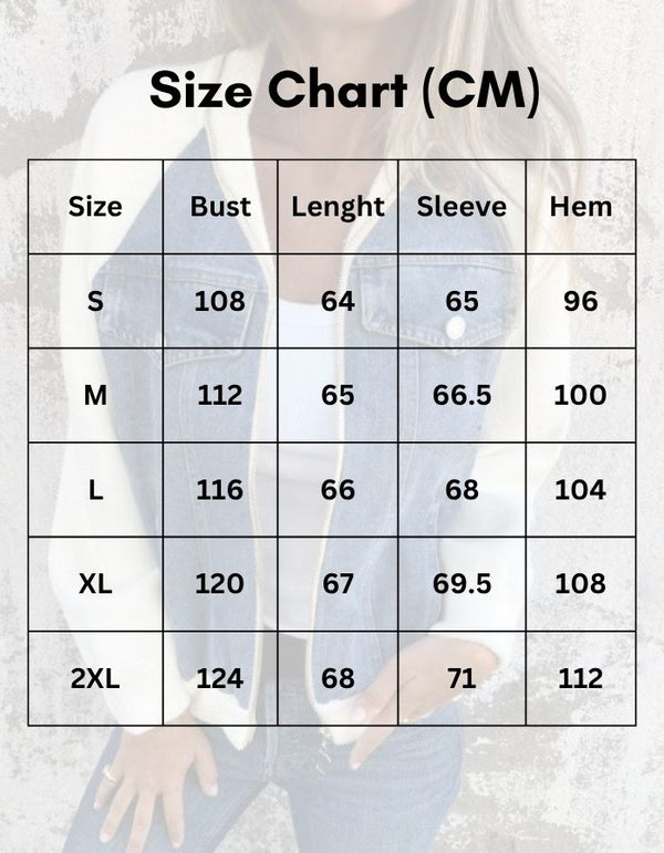 De DenimMuse™ jas is verkrijgbaar in de maten S tot en met 2XL, zodat er voor iedereen een perfecte pasvorm is.