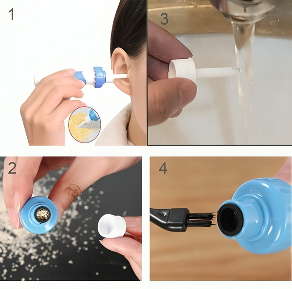 Veilige en zachte verlichting bij oorsmeeropbouw, beschermt het oor en verwijdert vuil, vocht en was met zachte siliconen tips en gecontroleerde zuigkracht.