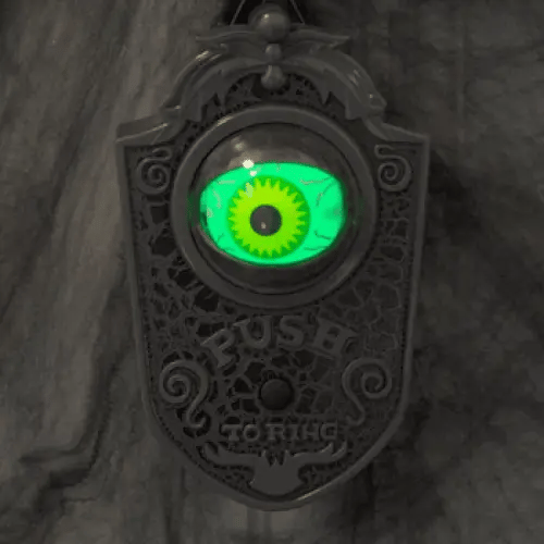 Met EerieBell⢠voeg je eenvoudig een vleugje spanning toe aan je huis. Het spinnenoog en de geluiden creëren een verrassende ervaring voor elke bezoeker.