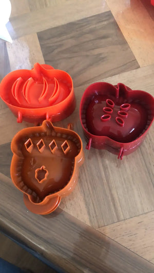 De set bevat drie unieke vormen: pompoen, appel en eikel. Perfect voor elke feestelijke gelegenheid.