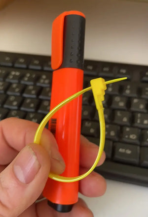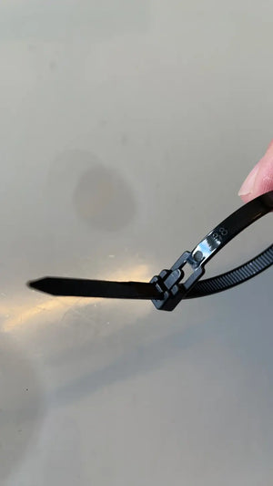 Druk de kleine hendel in en beweeg om de kabelbinder aan te passen. Herhaal dit voor hergebruik.
