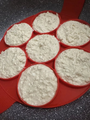 Gebruik boter of een anti-aanbakspray op de FlipRings⢠voor het beste resultaat en om plakken te voorkomen.
