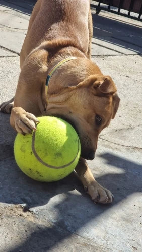 De oversized, kauwbestendige en niet-giftige samenstelling beschermt tanden en houdt de bal langer heel, zelfs bij fanatieke kauwers.