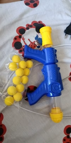 Het geweer gebruikt lucht om de schuimballen af te vuren, wat zorgt voor veilig en batterijvrij speelplezier.