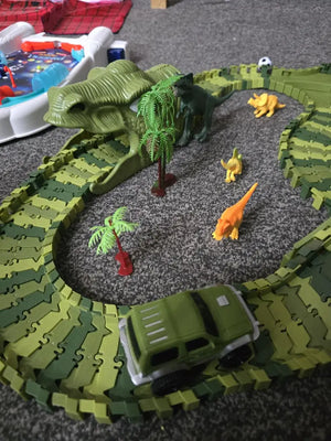 Overwin verveling en stimuleer creativiteit met een dinosaurus-racetrack voor uren speelplezier.