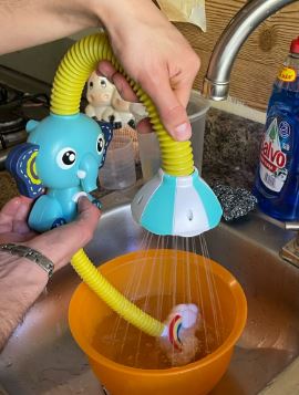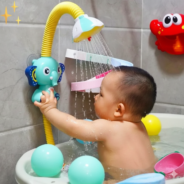 De SplashiPuff⢠olifantdouche maakt baden leuk en stressvrij met zijn zachte waterstraal en eenvoudige bediening.
