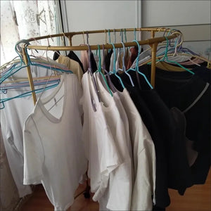 Ronde ophanghaken spreiden kleding gelijkmatig. Delicate jurken en blouses drogen vloeiend zonder vouwen of beschadiging.