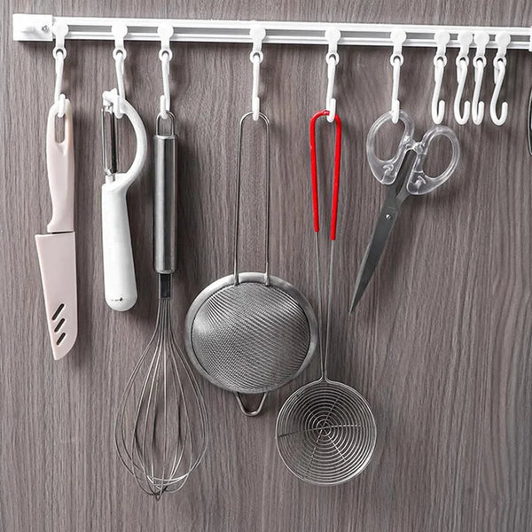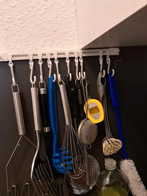 Met SlideHooks⢠kun je al je keukengerei netjes ophangen zonder gereedschap. Dit betekent geen rommelige aanrechten meer. Geniet van een georganiseerde keuken waar alles binnen handbereik is. Perfect voor drukke ochtenden of wanneer je snel wilt koken.