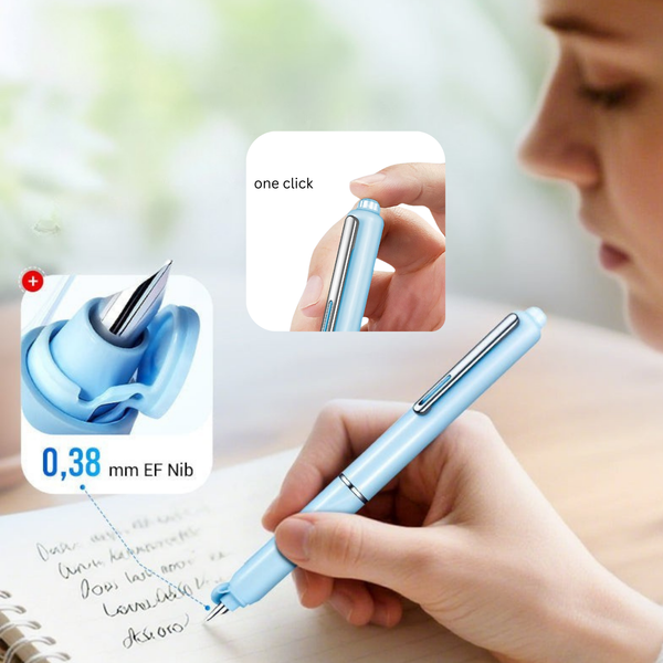 Ervaar het gemak van direct schrijven zonder vlekken of onderbrekingen. Met de Inkridge⢠krijg je een constante, vloeiende inktstroom die elk woord tot leven brengt. Perfect voor mannen die snelheid en efficiëntie waarderen in hun drukke schema's.