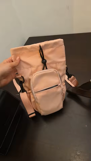 Eindelijk een compacte tas waar fles en telefoon samen in passen zonder te klooien.