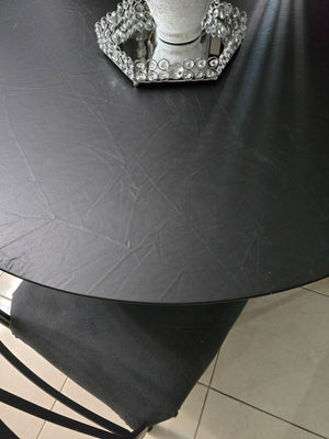 Het is ontworpen voor ronde tafels, maar dankzij het stretch-fit ontwerp past het op verschillende maten.